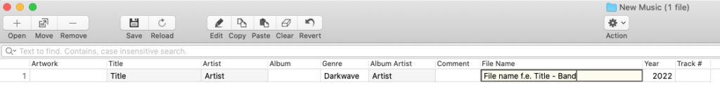 File Name: Is already filled in. This is the mp3 file name. At best you only have the song title there or plus the artist name